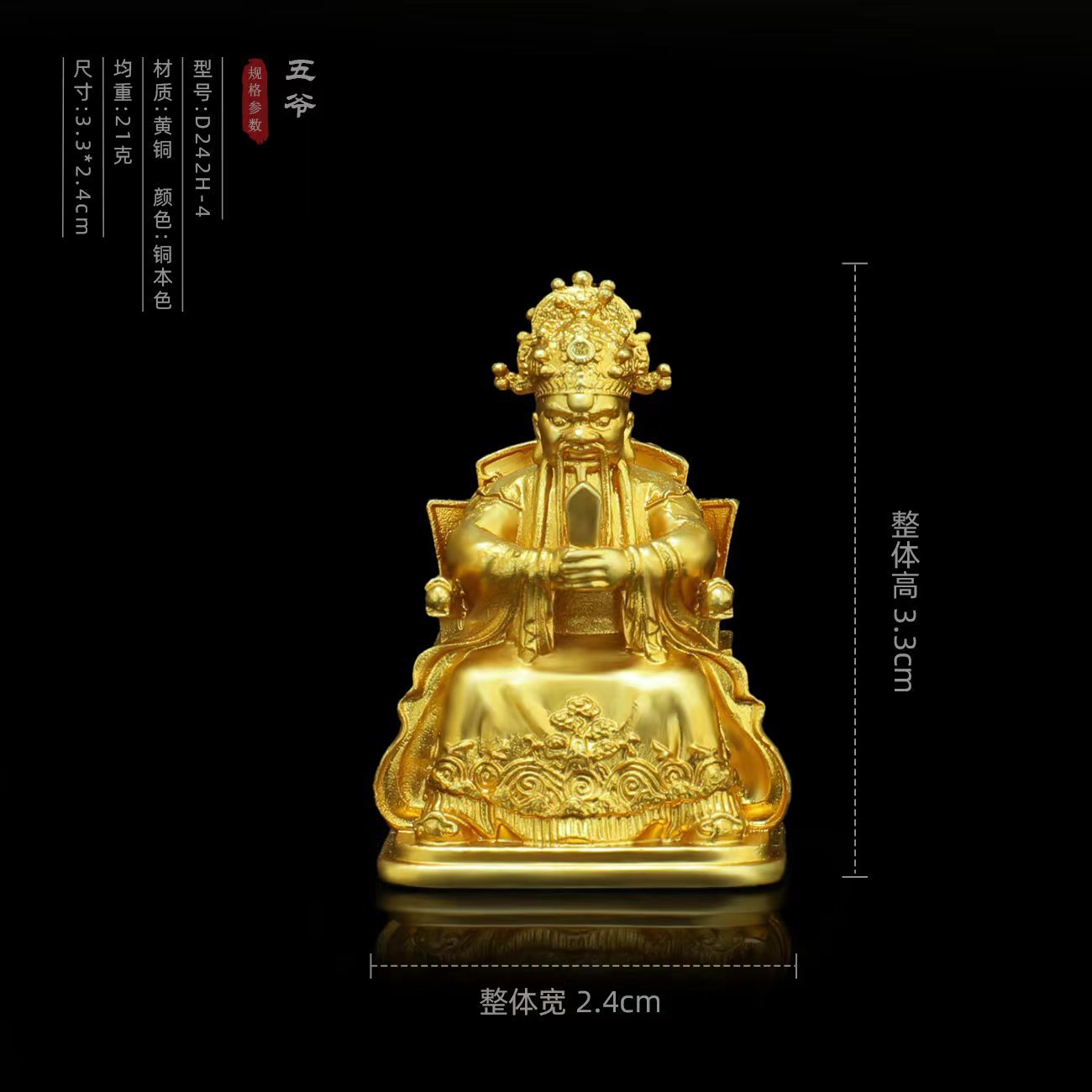 真鍮のミニ仏像の五爺の3cmの金色の装飾品は精巧です。