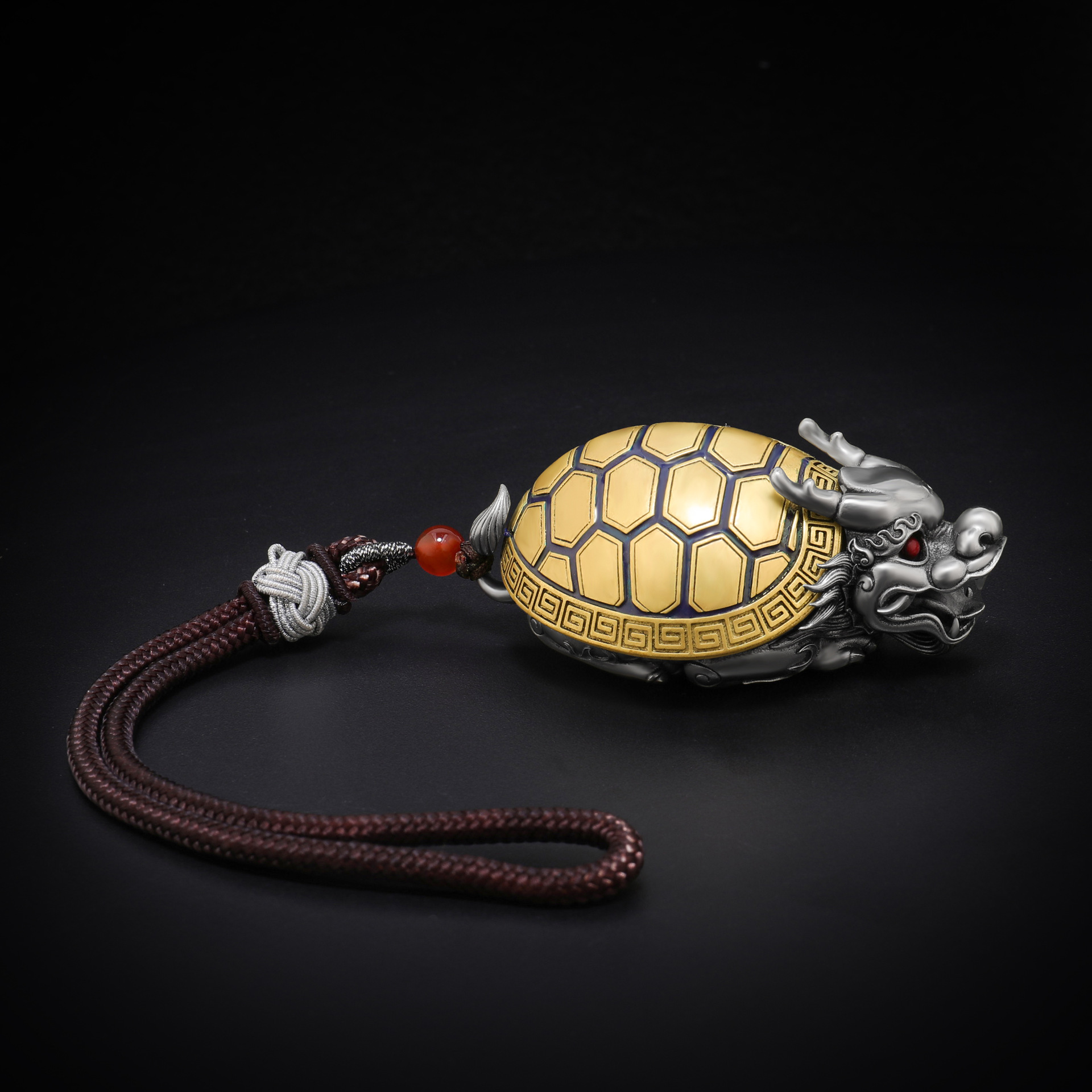 真鍮の2色の竜亀の銅の置物のペンダントの取っ手の竜亀は財を招いて宝の銀の装飾に入って持ち歩きます。