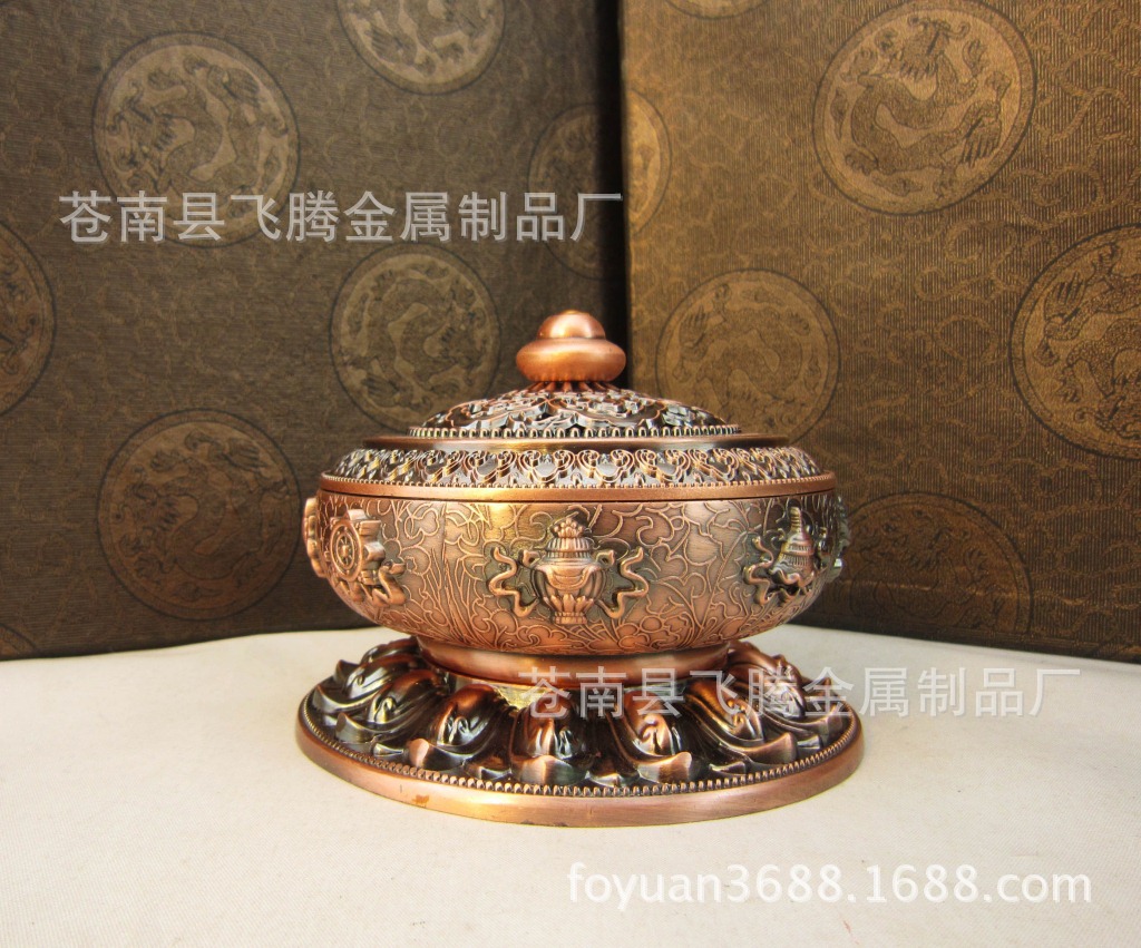 マニトップ蓮香炉八宝合金タントラプレート香炉卸売アロマセラピー香炉白檀香炉仏具