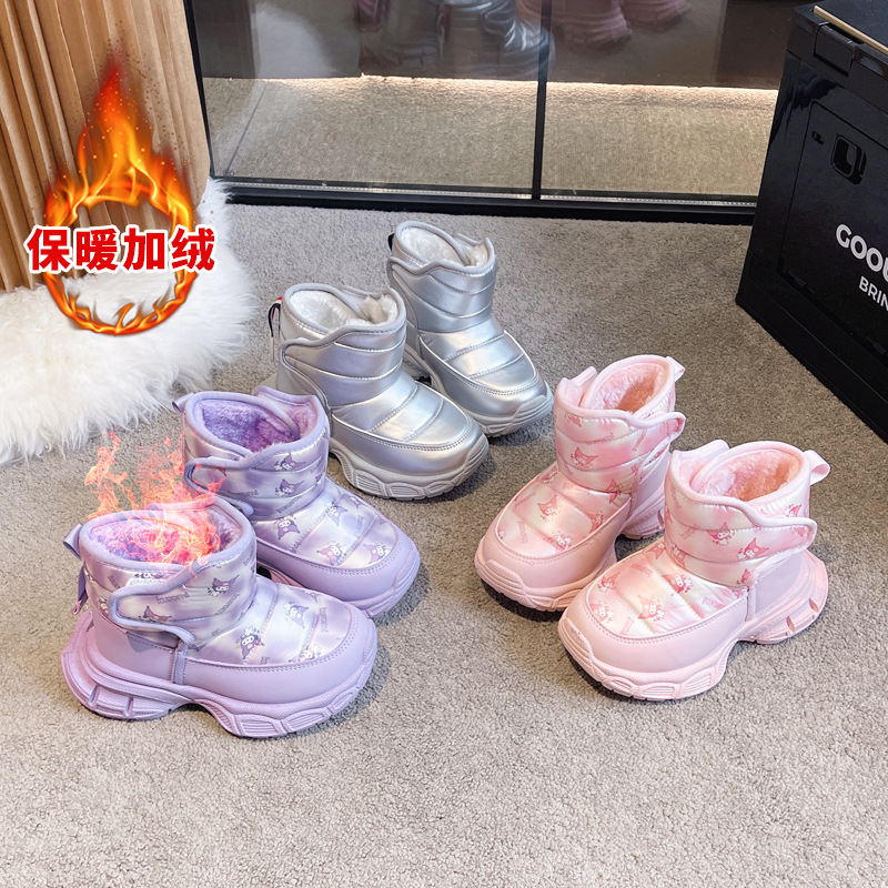 2024冬の新しい女の子の雪地靴子供の綿靴とベルベットの厚い保温東北綿靴の代理