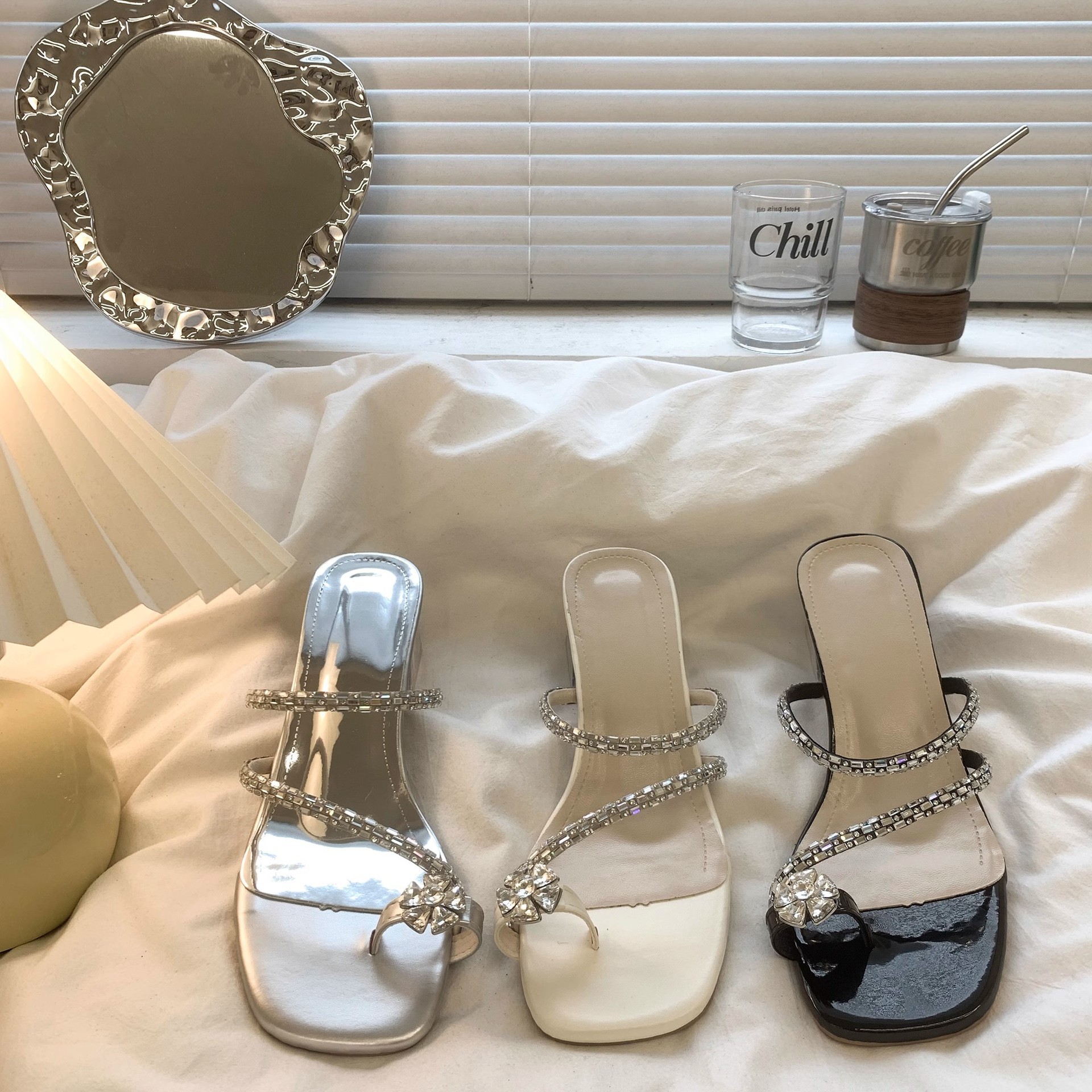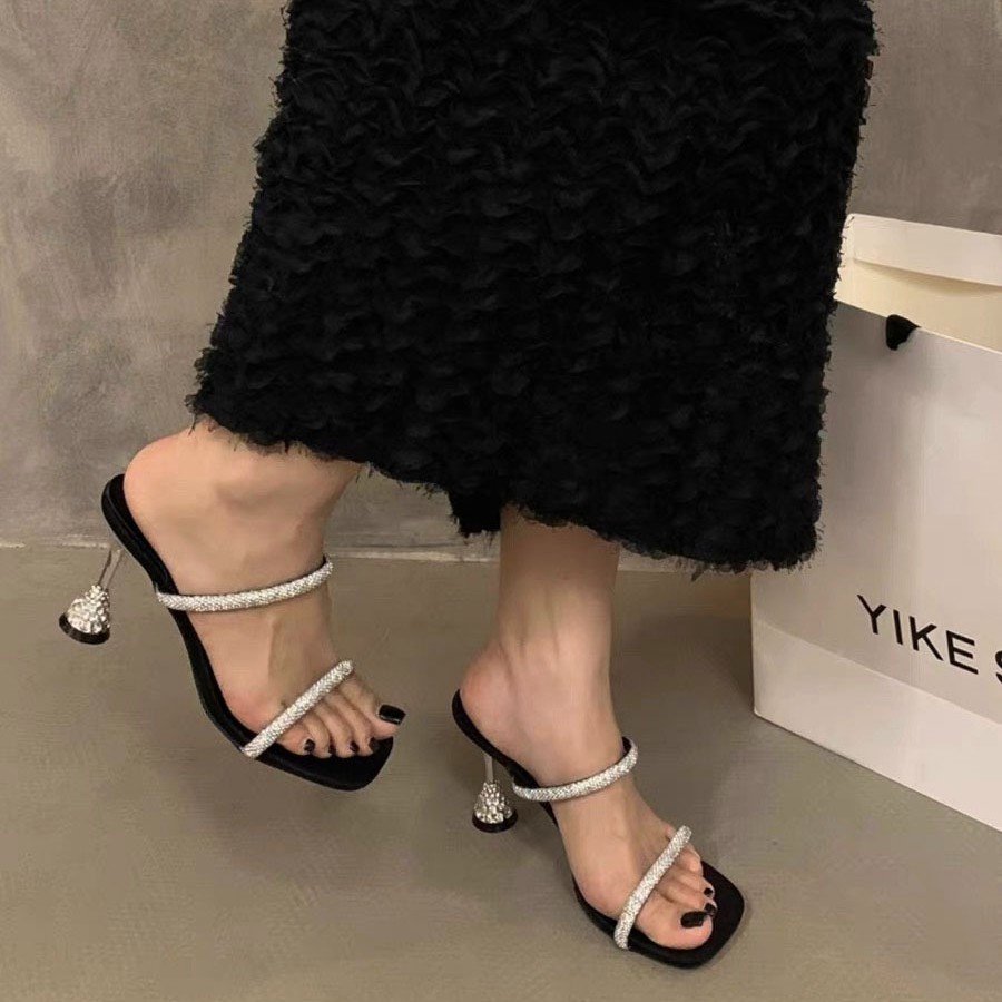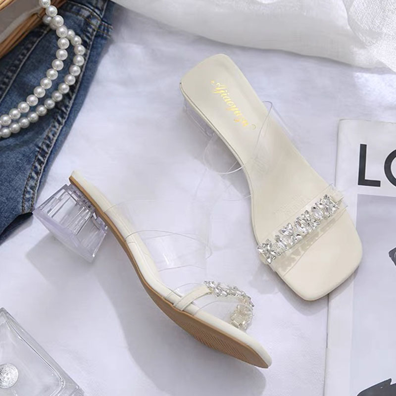 ニッチな透明バンドスリッパ女性のアウターシューズ 2025 夏ラインストーンサンダルハイヒールサンダル