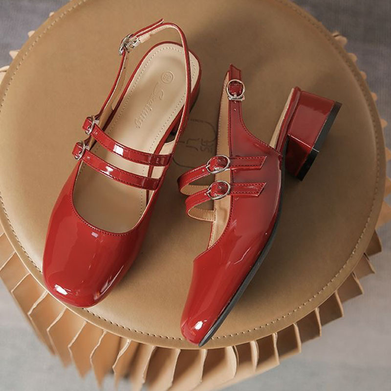 女性のための厚いヒールのつま先サンダル 2025 新しい夏ヘップバーンミッドバックフレンチレトロな小さな赤いメリージェーンシューズ