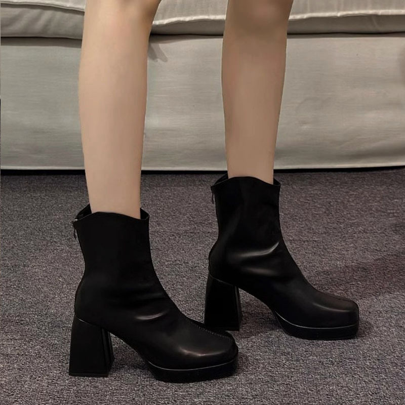 女性用の白い小さな純粋な欲望スタイルのフレンチショートブーツ、太いヒール、ミッドレングス、レトロな気質のショートブーツ、ハイヒールのショートブーツ
