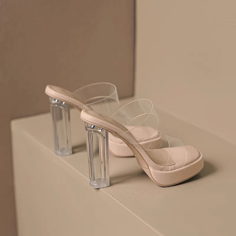 2025年夏新作防水プラットフォーム透明サンダルレディースワンラインストラップ太いヒールハイヒールシンプルクリスタルサンダル多用途