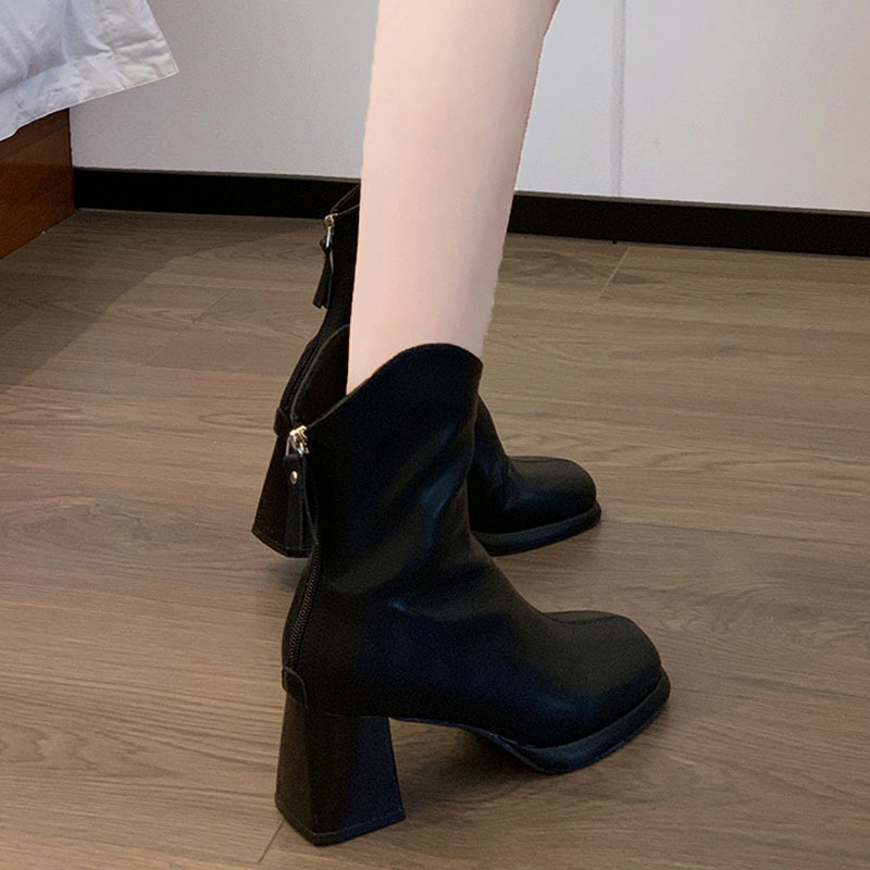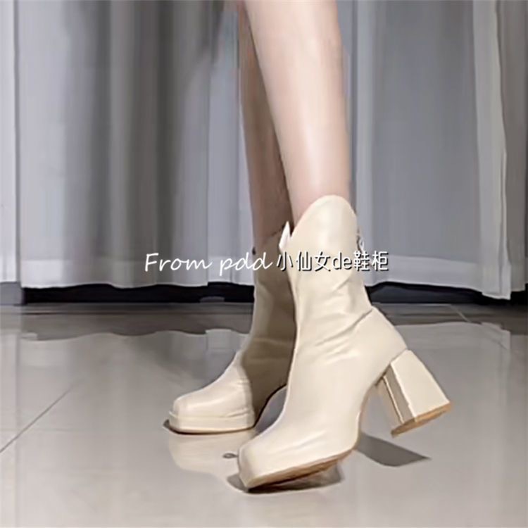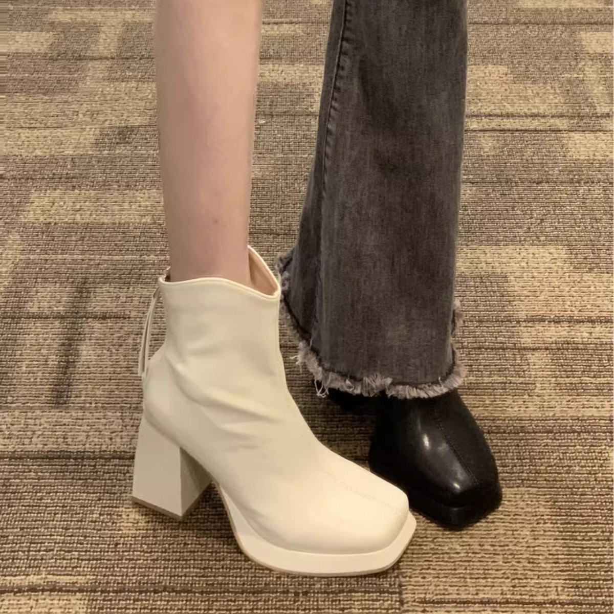 初秋の新作厚底防水プラットフォームオフホワイトショートブーツ小柄ハイヒールスリムブーツ太ヒールマーティンブーツ女性用