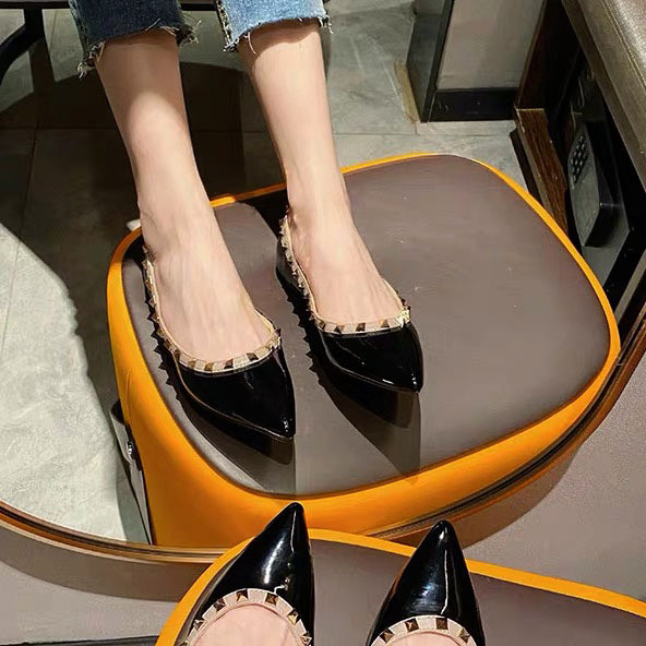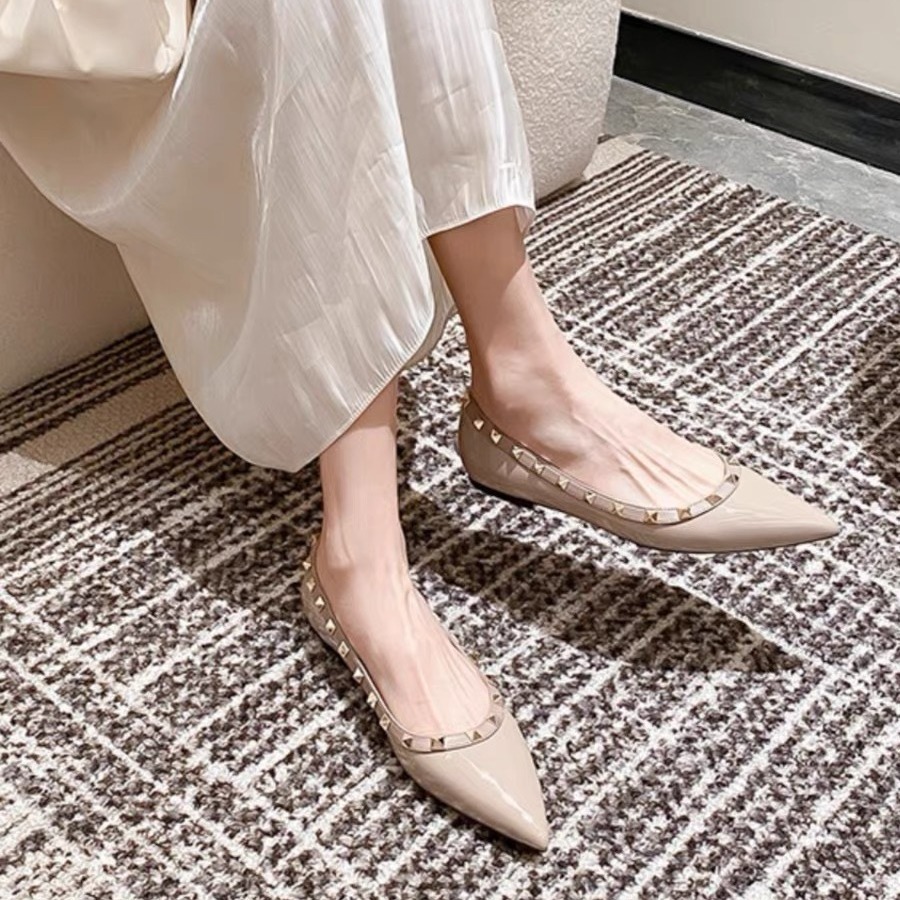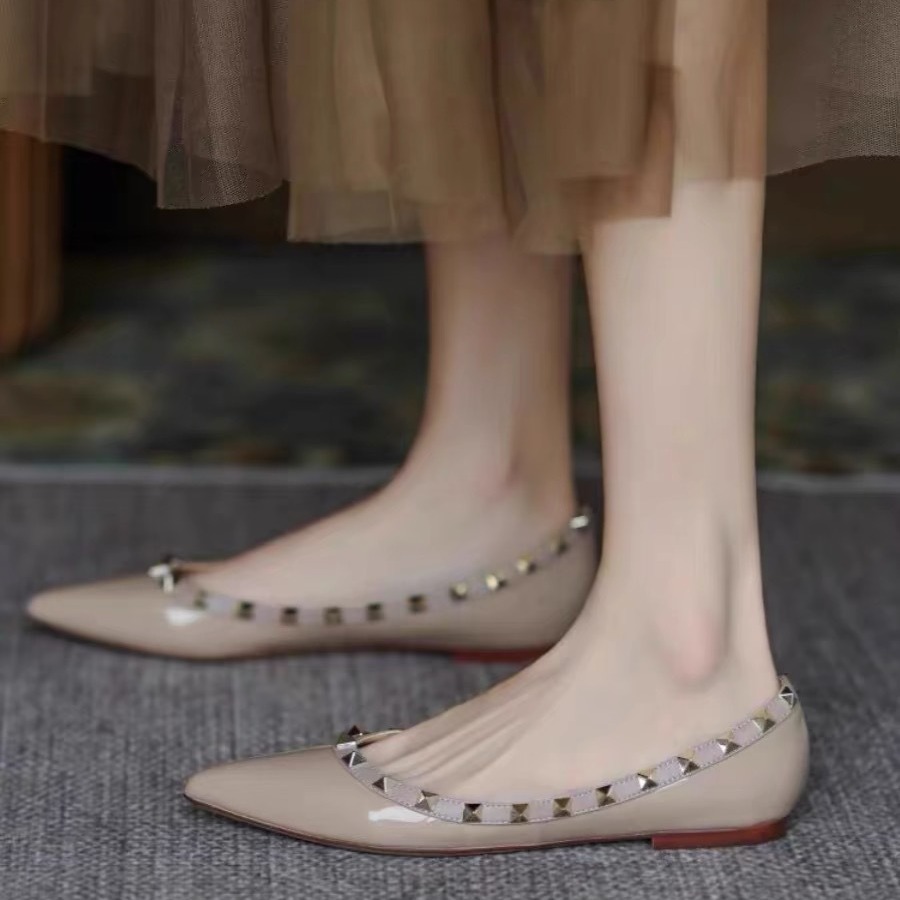 平底款~尖头单鞋女平底柳丁平跟船鞋浅口软底女鞋2025新款铆钉鞋