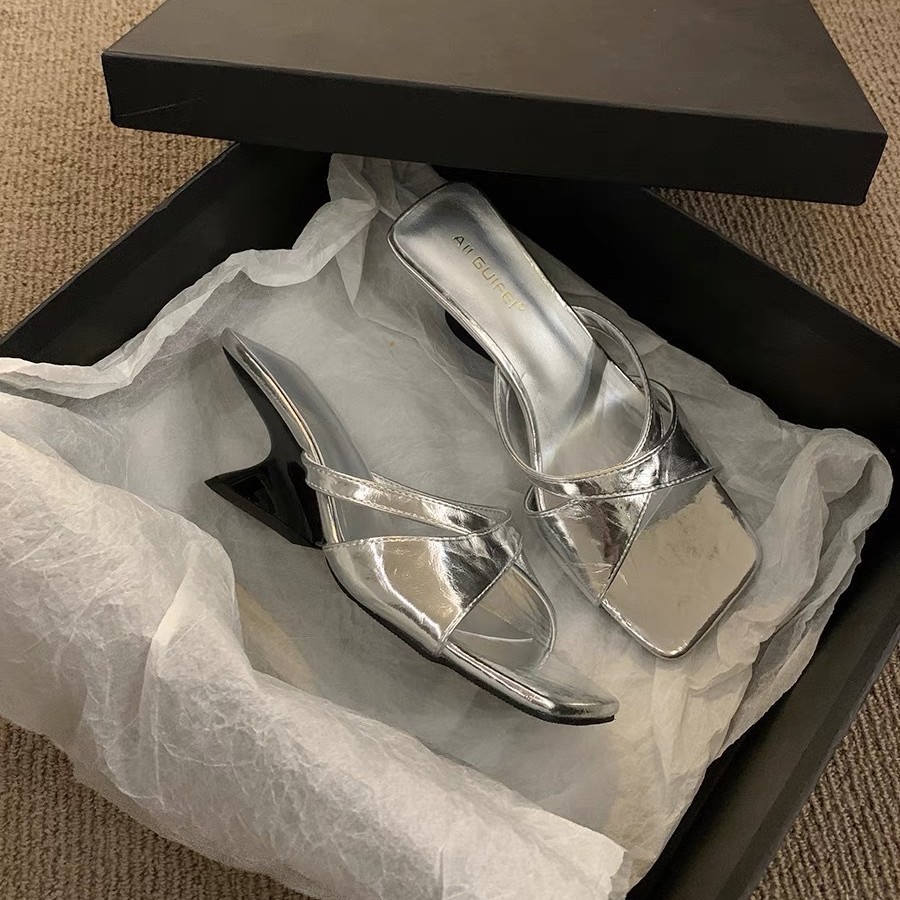 ハイヒールラインストーンスクエアトゥニッチデザインスリッパ女性のための 2025 夏の新スタイル美白と高さのワイングラスサンダル