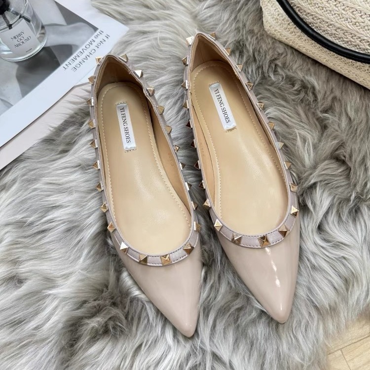 女性用ポインテッドトゥリベットシューズ、フレンチスタイルのパテントレザーアウターウェア、柳の瓢箪シューズ、女性用の夕方の風、優しいヌードカラーフラットシューズ