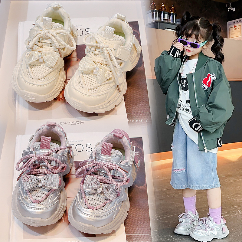 子供靴女の子メッシュスポーツシューズ 2025 春の新子供通気性軽量トレンディなブランドモデル少女お父さん靴
