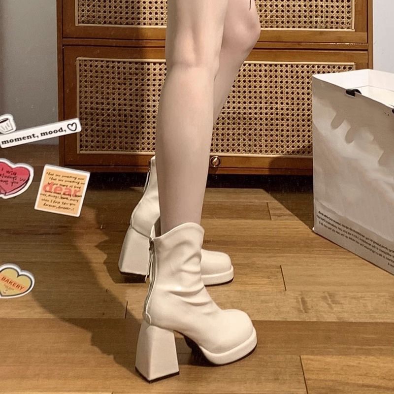 フレンチラウンドトゥ厚底伸縮性スリムハイヒールショートブーツレディース英国風ウエスタンスリムスカート付きハイヒールショートブーツ