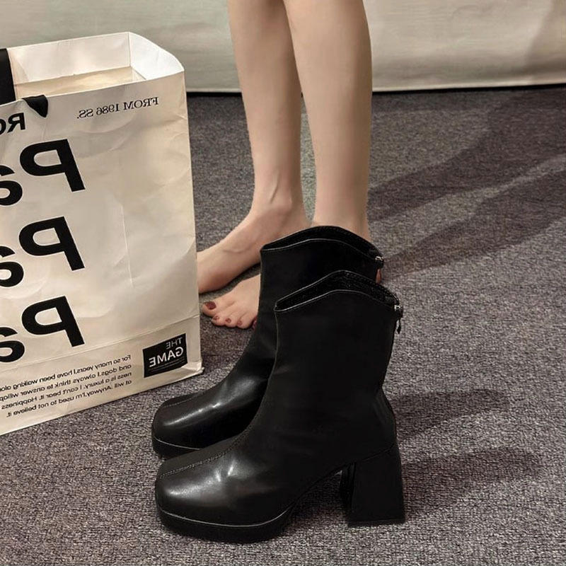 太ヒールのハイヒールのショートブーツの子供2025新型秋冬の白いやせている靴はやせています。