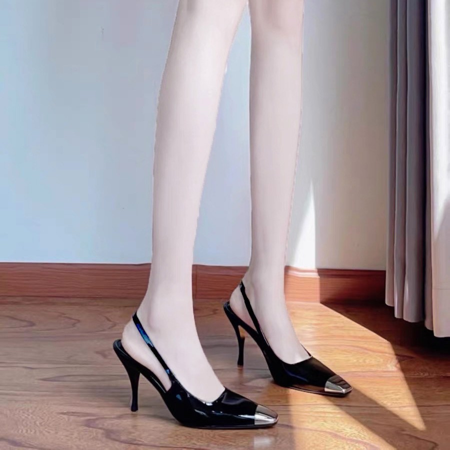 女性のプロフェッショナル 2025 秋冬の女性のための同じ黒のハイヒールの靴パテントレザーメタルスクエアトゥスティレットファッションシューズ