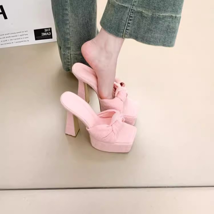 防水プラットフォームハイヒール 2025 夏の新スタイルライト高級スクエアトゥオープントゥボウヒールサンダル女性用