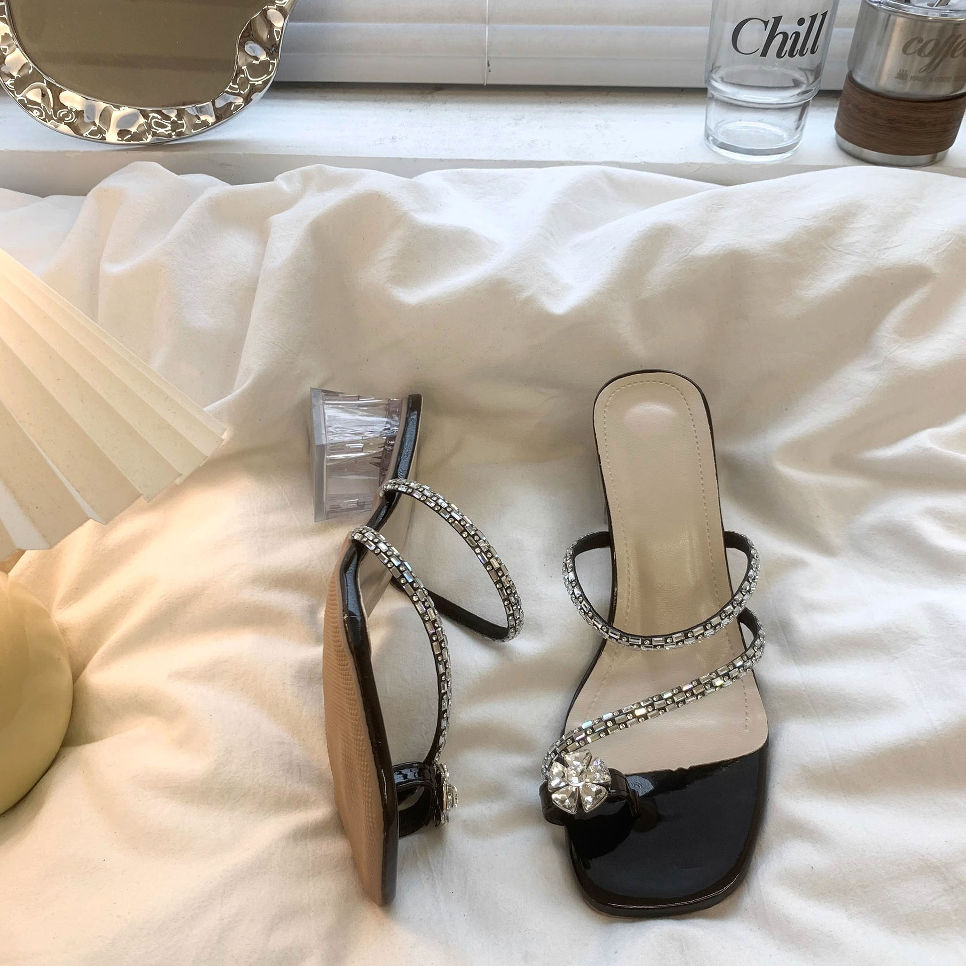 クリスタル美しい厚底サンダル女性の夏のアウターウェア 2025 新しいスタイルスカート付きフレンチトングサンダルハイヒール