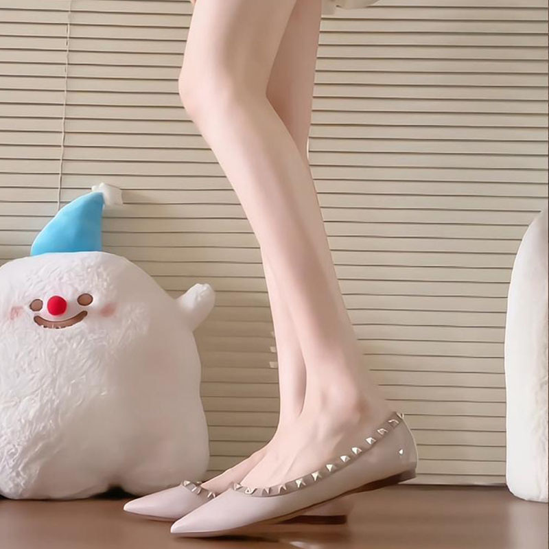 2025 春夏新作リベットフラットシューズ浅い口パテントレザー柳ソフトボトムボートシューズフラットシューズ女性のポインテッドトゥシングルシューズ女性