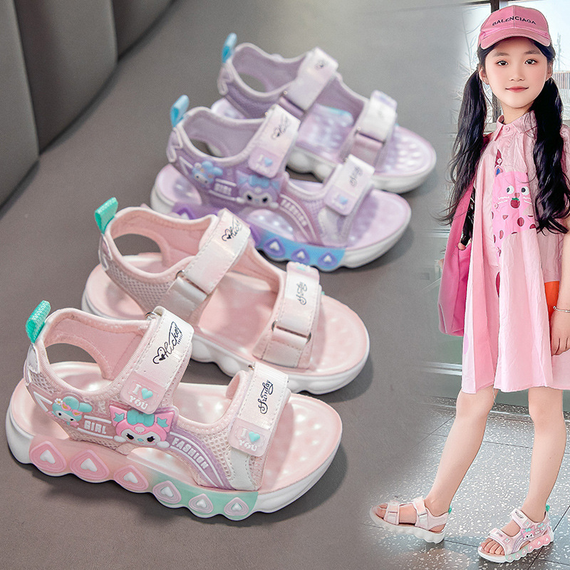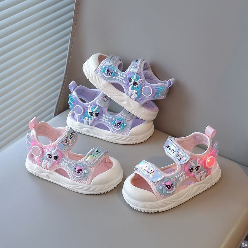 2025 夏の新女の子サンダルベビーシューズ包頭ソフト底ビーチシューズ漫画点滅靴プリンセスシューズ