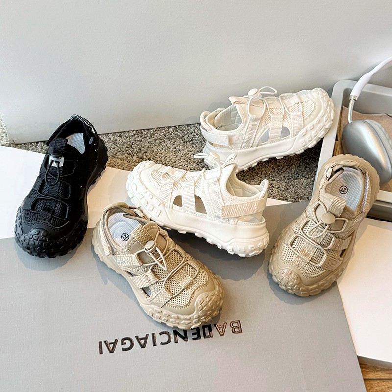 男の子中空通気性お父さん靴 2025 夏の新シングルメッシュ通気性ランニングシューズ韓国スタイル女の子カジュアルビーチシューズ