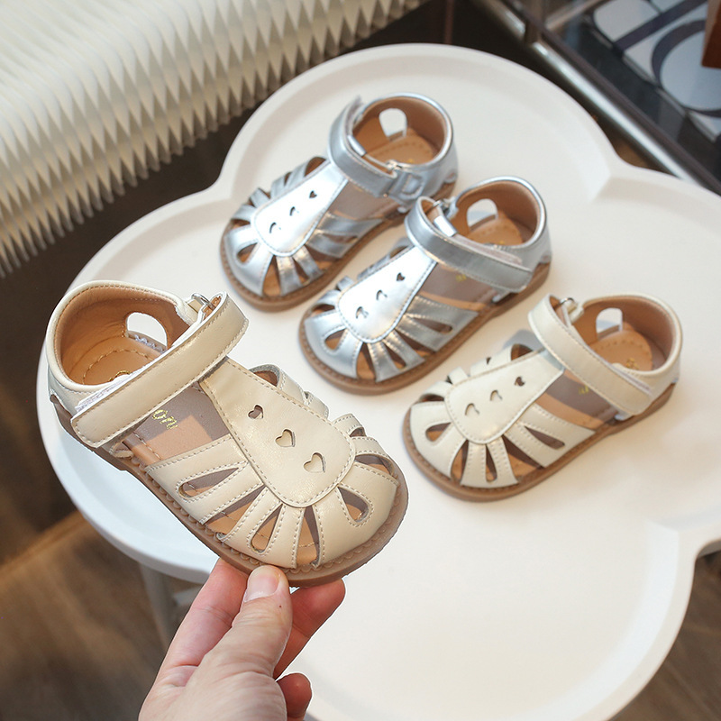 女の子シルバーローマンサンダル 2025 夏の新スタイル中空多用途ソフトソール幼児の靴ベビーサンダルトレンディ