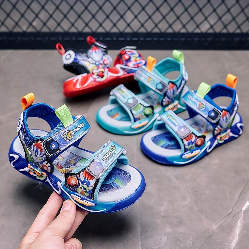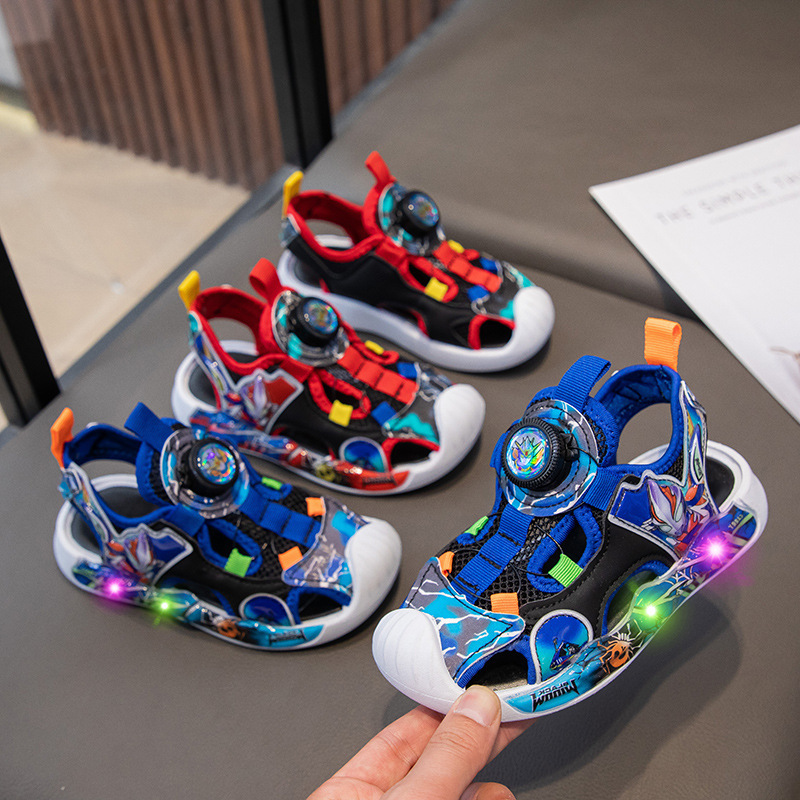 漫画ライトアップ子供サンダル 2025 夏の新しい赤ちゃん男の子発光サンダル小さな男の子ビーチサンダル