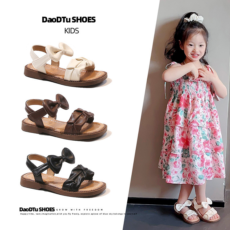 子供包頭蝶結びサンダル 2025 夏の新スタイル中空韓国風ソフトソールサンダル中大子供用