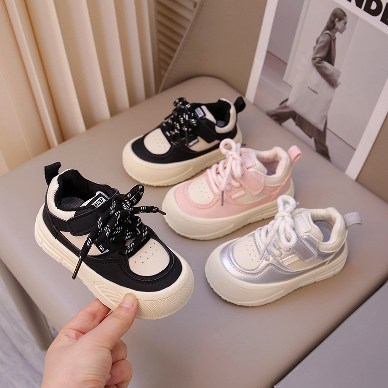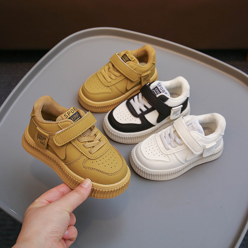 子供の子供の運動靴2024秋冬の新型の韓国版の子供の学歩の靴の洋風の板の靴の柔らかい底の中でカジュアルな靴