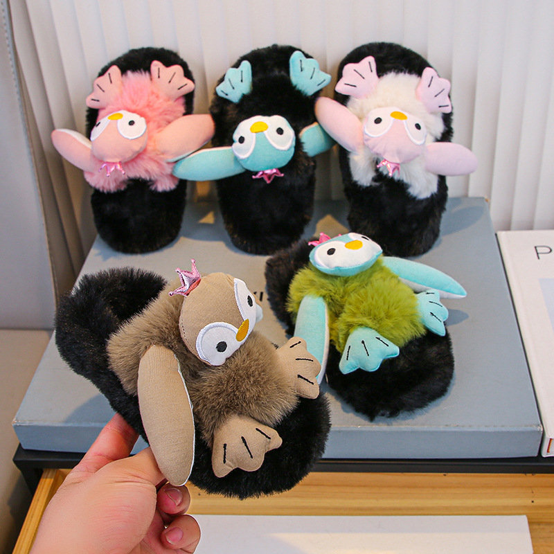 ファッション家庭の子供の毛のスリッパ2024秋冬の新型の外は靴の平底のレジャーのぬいぐるみの室内の綿を履いて潮を引きます。