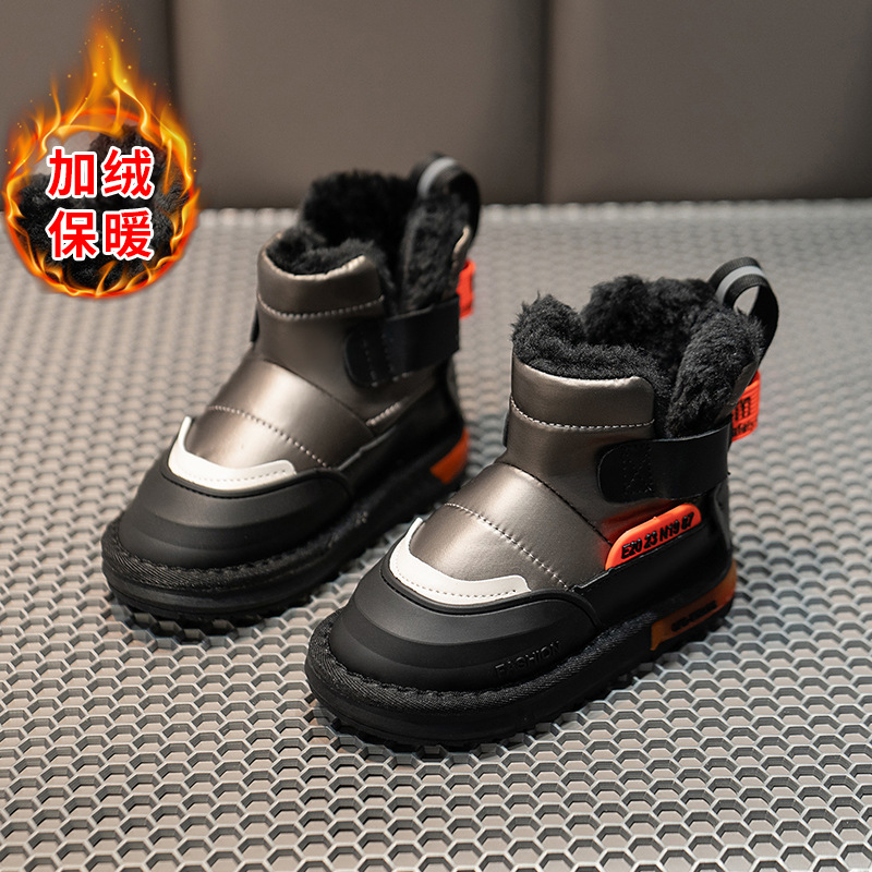 子供防水綿入り雪地靴2024冬の新型韓国版戸外男子綿靴少女ベルベットブーツ