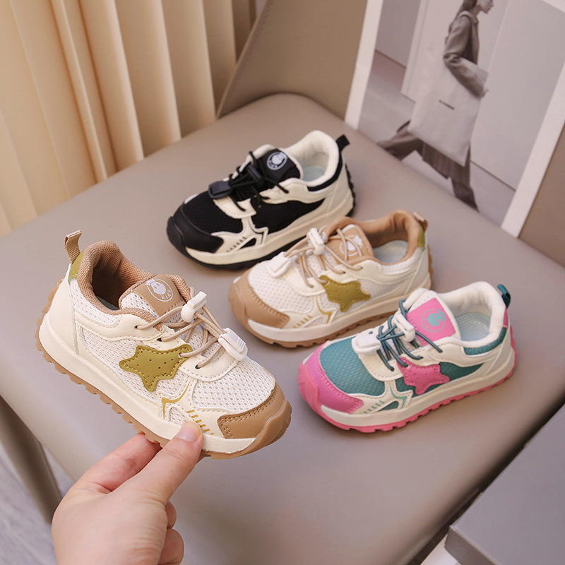 星の子供の靴の女の子の運動靴2024秋の男の子の滑り止めの阿甘靴の赤ちゃんのネットの通気ネットの靴は走っています。
