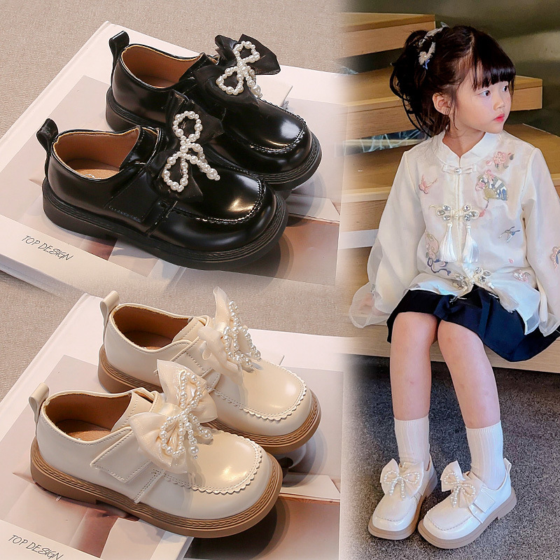 韓国版のファッションの女の子のシンプルな小さい靴の2024秋のタイプの子供の王女の靴の柔らかい底の赤ちゃんの学歩の靴の靴
