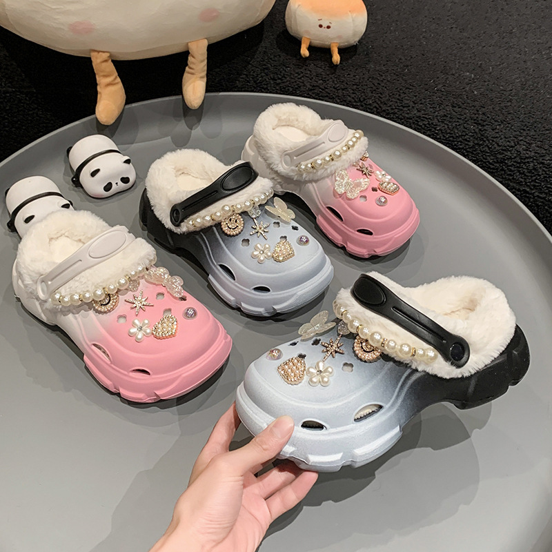 冬の家の子供の綿のスリッパ2024の新型の厚い底の高くなる穴の靴のファッションのかわいい家の綿の靴