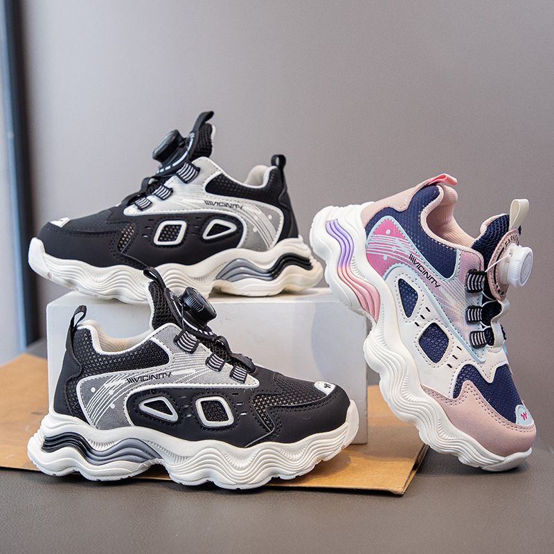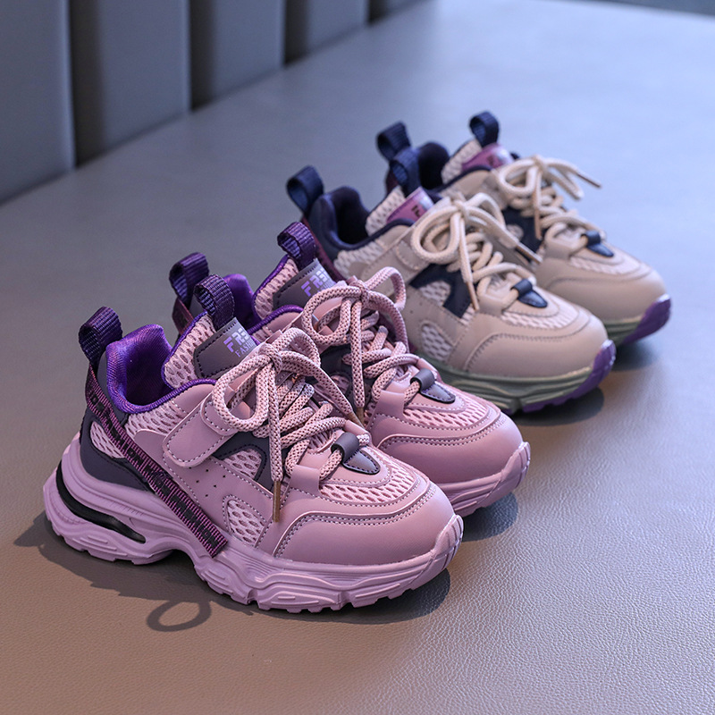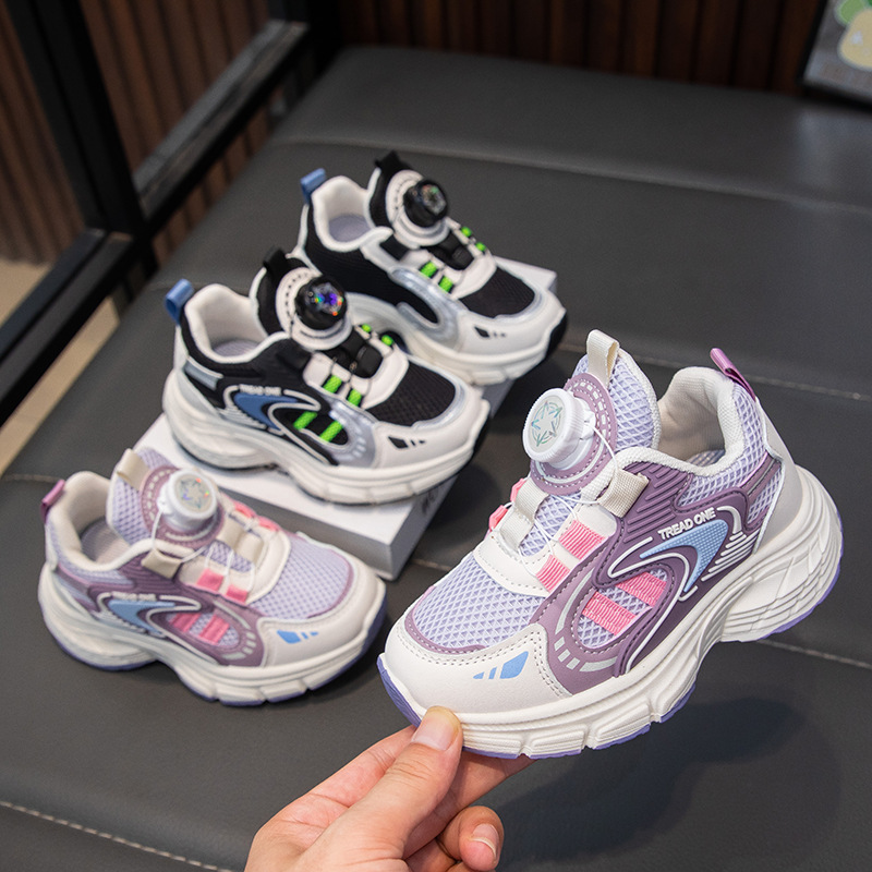 卸売り2024秋の新型子供カジュアル靴の女の子のお父さん靴の通気性は足のネットのファッション靴の現物をカバーします。