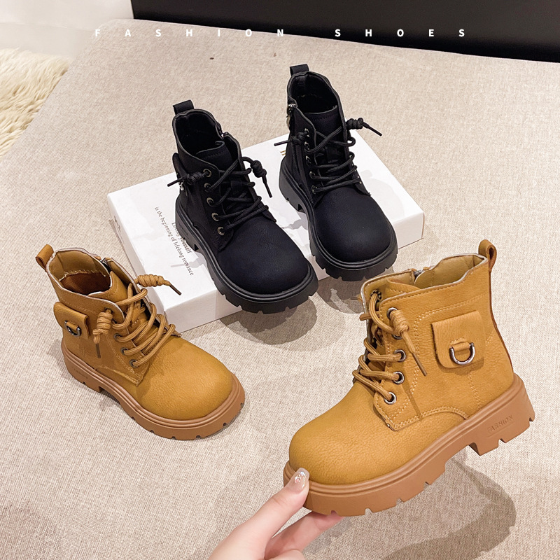 青春ファッション児童マーティンブーツ2024秋の新型児童ブーツ男児純色ショートブーツ児童対外貿易レジャーモデル