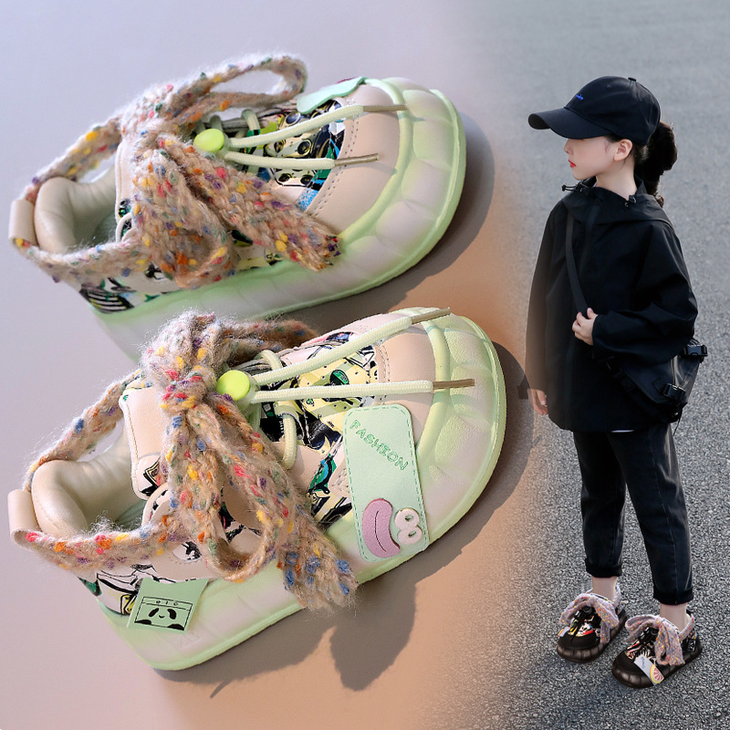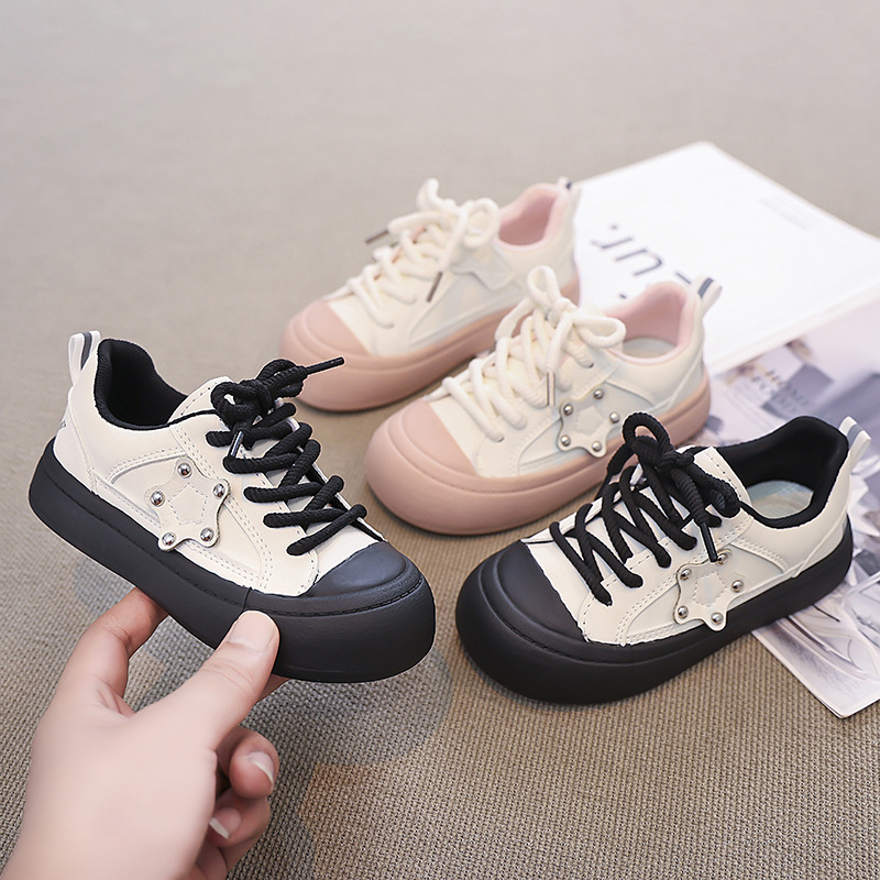 ファッションカジュアルオリジナル童靴大頭醜い萌え靴2024秋の新型丸頭厚底靴白靴板靴ブーム