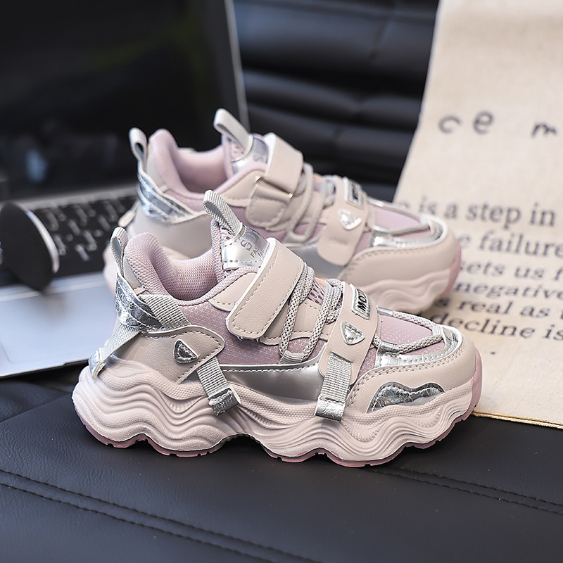 女童运动跑步鞋2024秋季新款老爹百搭透气软底儿童小学生皮面宝潮