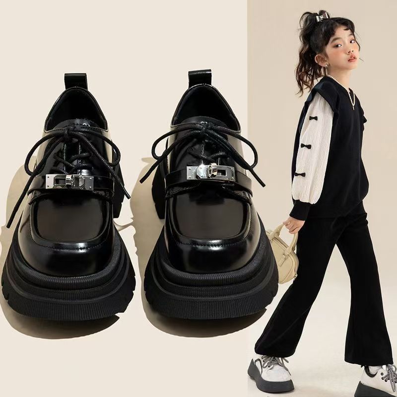 シンプルでファッション的な女の子の靴2024秋の子供の韓国版プリンセスシューズ
