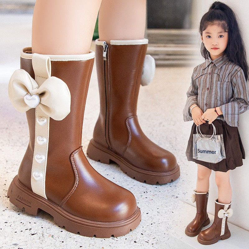 女の子用ブーツ2024春と秋の新型子供用ブーツ