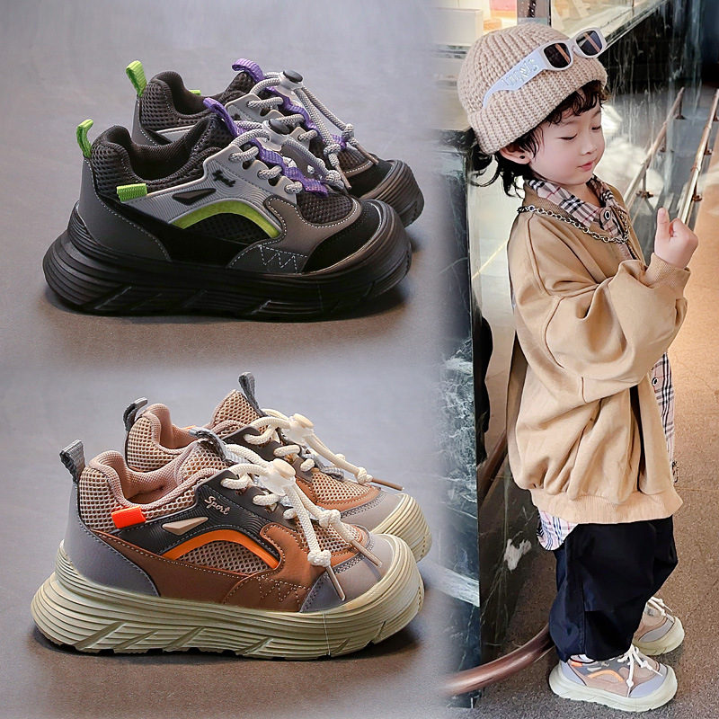 卸売り2024秋の新型子供カジュアル靴の女の子のお父さん靴の通気性は足のネットのファッション靴の現物をカバーします。