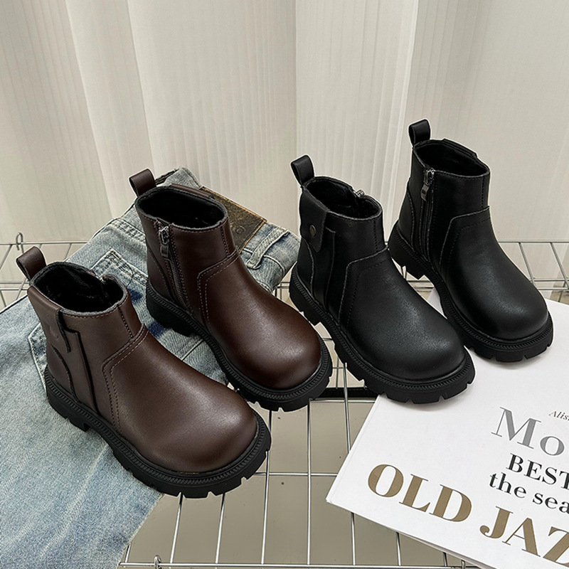 儿童马丁靴2024秋冬季新款儿童黑色短靴软底百搭时尚男童防滑皮靴