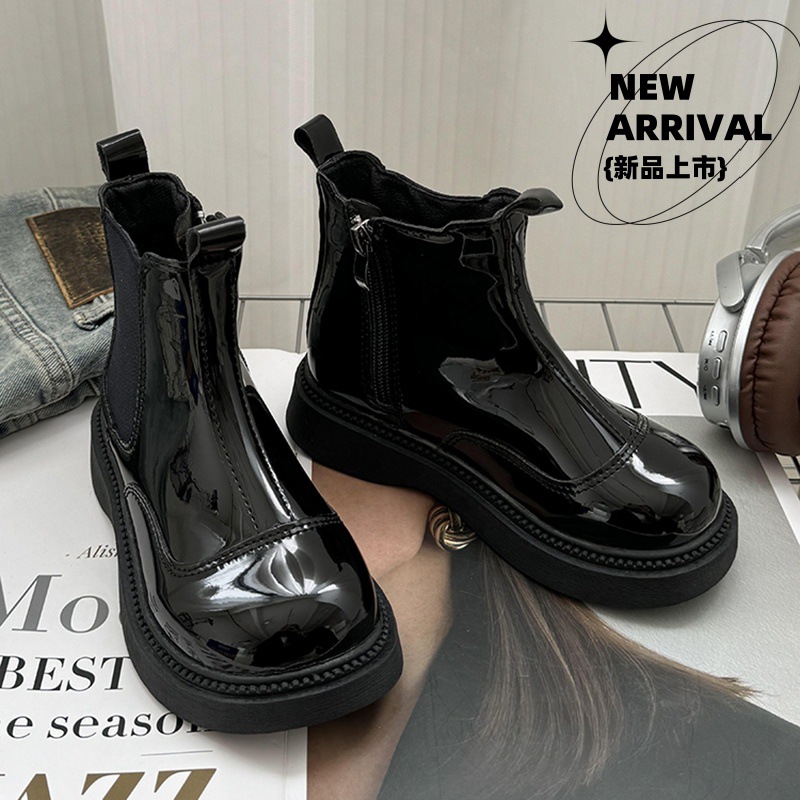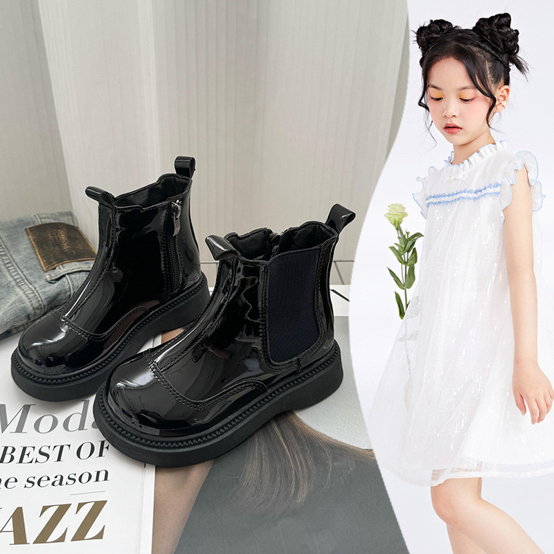 乖巧儿童英伦风时尚马丁靴2024秋冬款儿童乐福鞋软底鞋黑色英伦靴