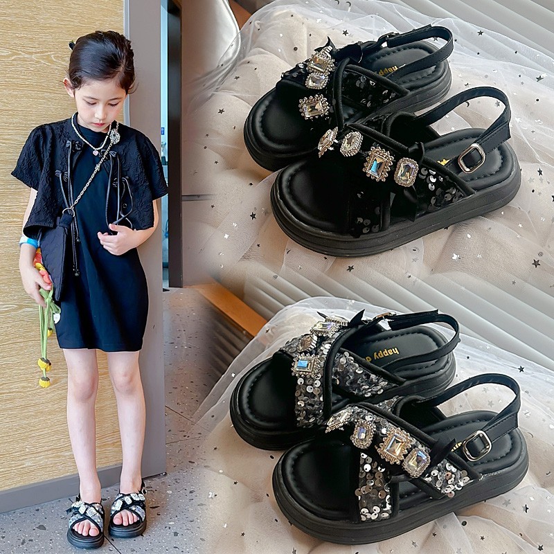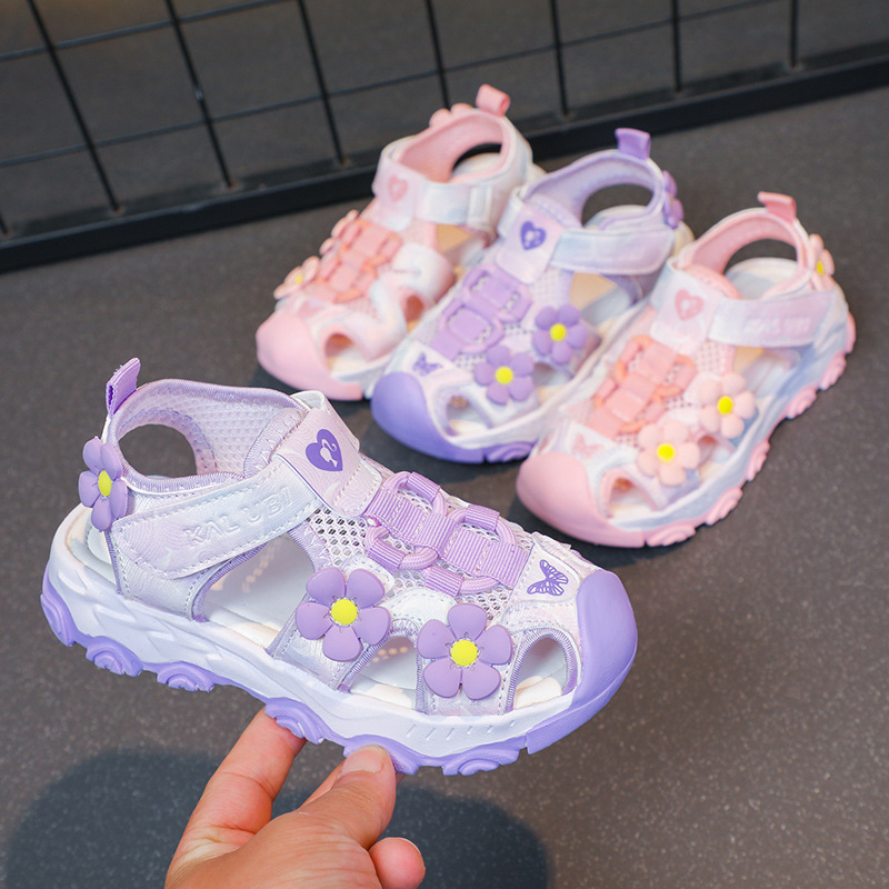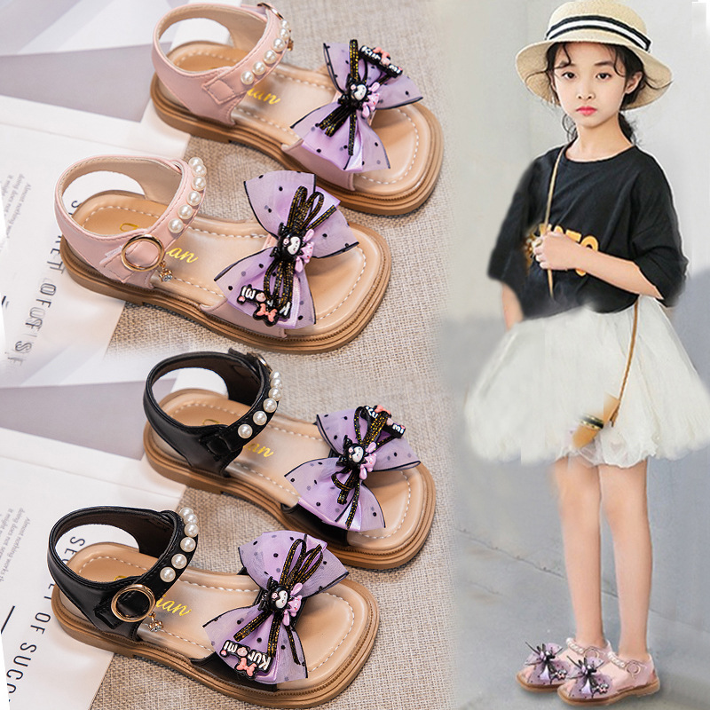 子供ファッションお姫様サンダル2024夏の新型カジュアルシューズ子供用ソフト底洋気ビーチ靴卸売り