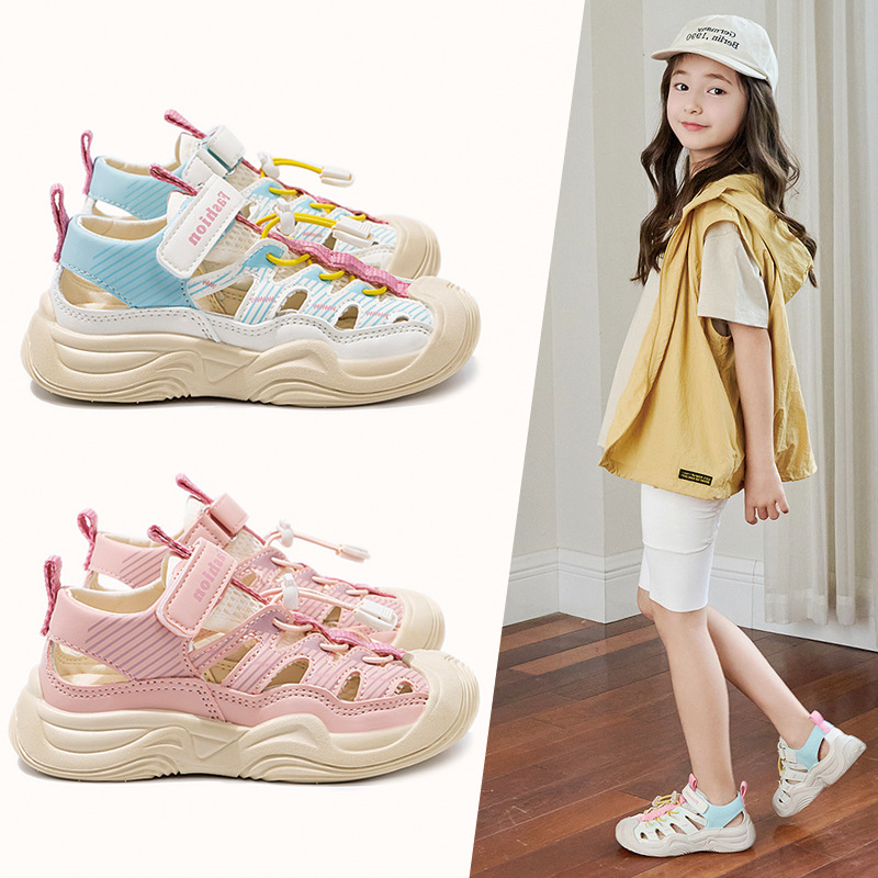 子供のファッションの包頭サンダル2024夏の新型のカジュアルシューズの子供の柔らかい底の洋気のビーチシューズの卸売り