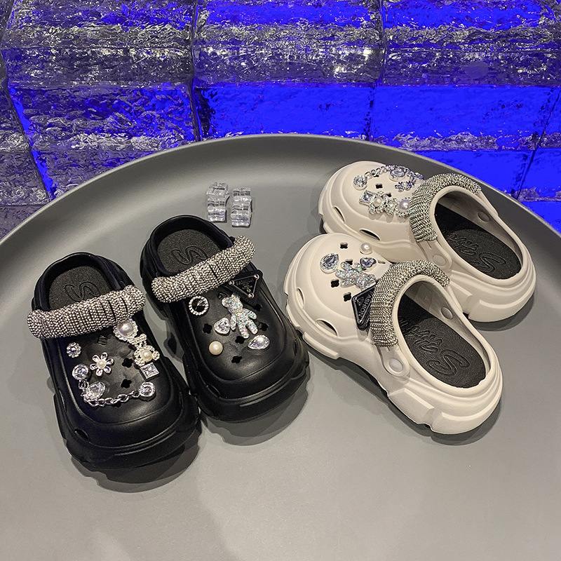 洞洞鞋2024夏季外穿厚底7厘米防滑黑色高跟2023新款网红凉拖鞋批