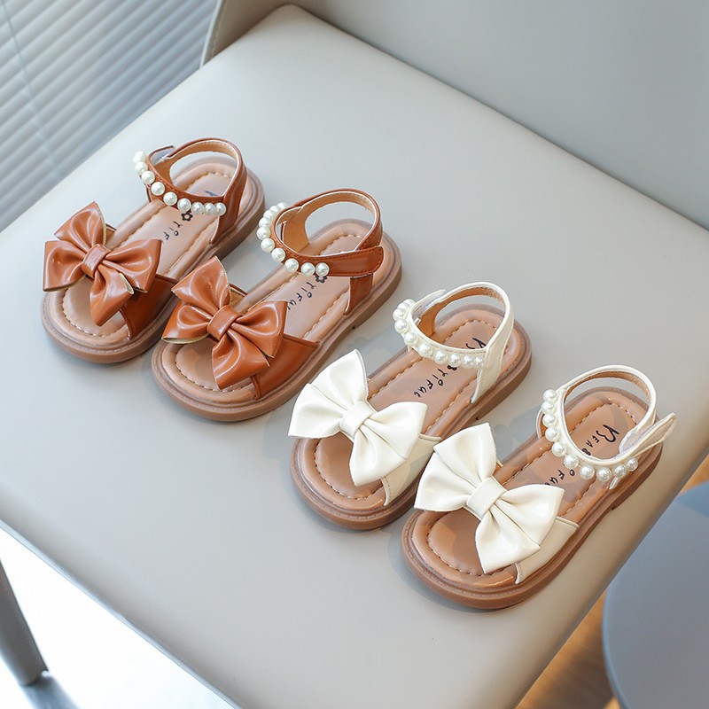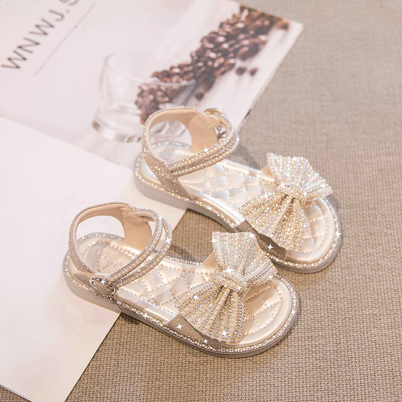 女童时尚公主凉鞋2024夏季新款百搭蝴蝶结儿童软底洋气沙滩鞋批发
