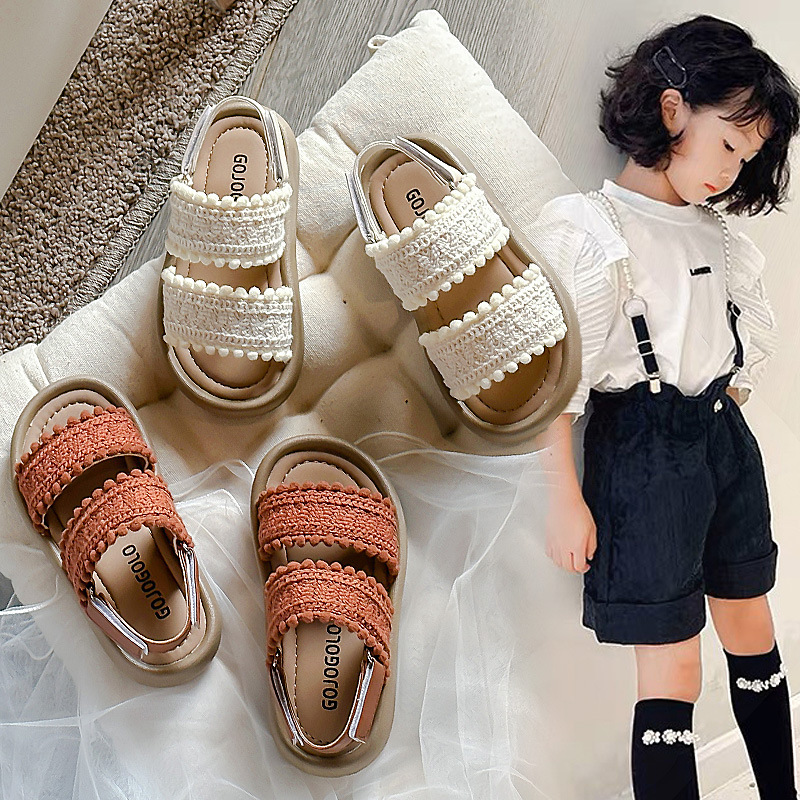 包頭児童ファッション運動サンダル2024夏の新型百合王女靴児童軟底洋気ビーチ靴