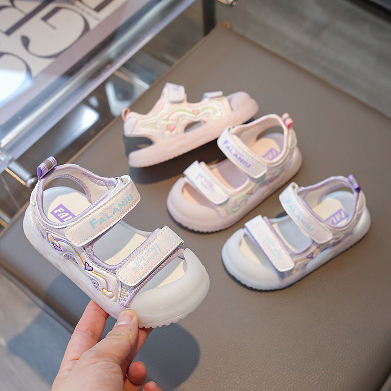 女童时尚运动凉鞋2024夏季新款百搭公主鞋儿童软底洋气沙滩鞋批发