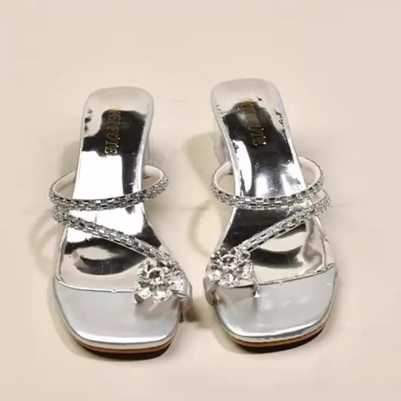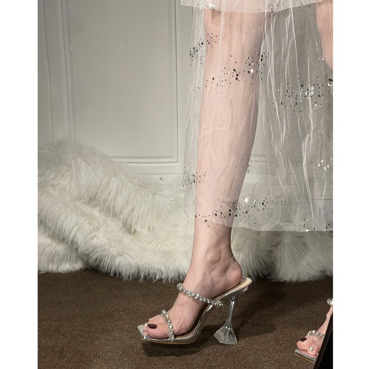 ニッチな透明バンドスリッパ女性のアウターシューズ 2025 夏ラインストーンサンダルハイヒールサンダル