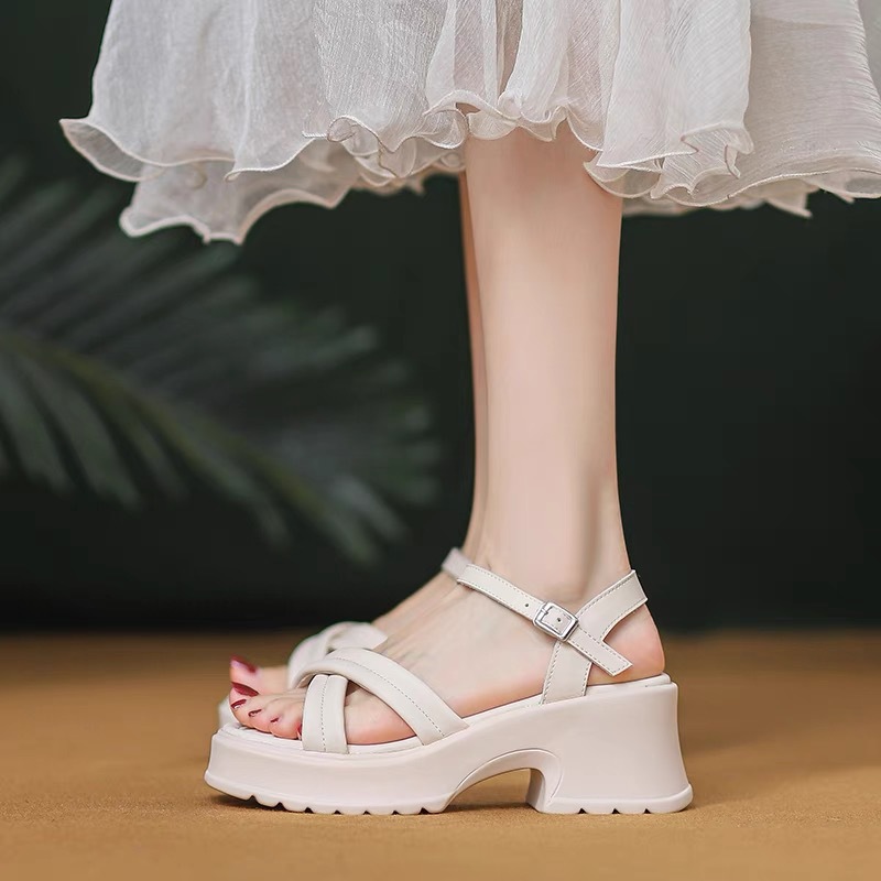 女性用厚底靴 2025年新作女性用カジュアルサンダル、厚底ヒール、足が疲れにくい、スカート付きハイヒール