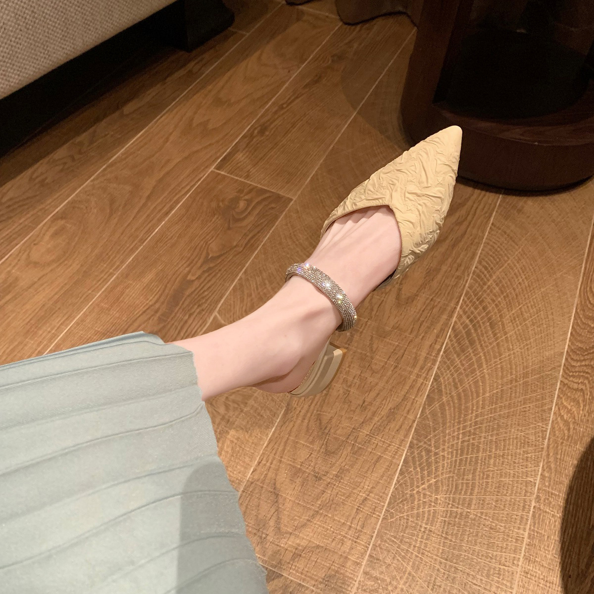 2025年新作夏用ワンラインダイヤモンドトゥキャップサンダル、スカート付き女性用、ポインテッドトゥ、バックオープン、太いヒール、女性用ハーフスリッパ
