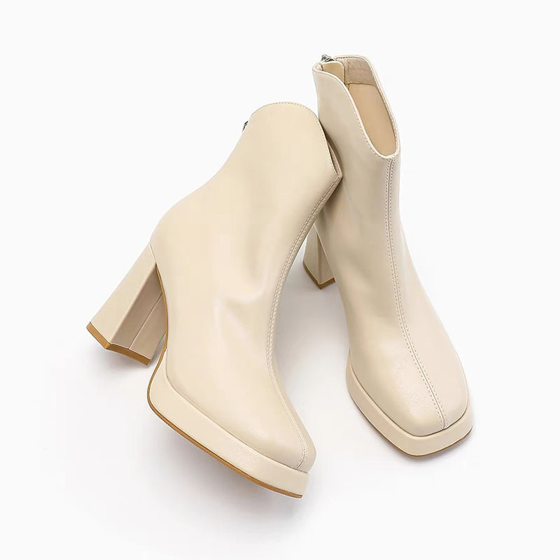 2025 秋冬新作英国スタイルマーティンブーツレディース厚底 V 口スリムシングルブーツハイヒールバックジッパーショートブーツ