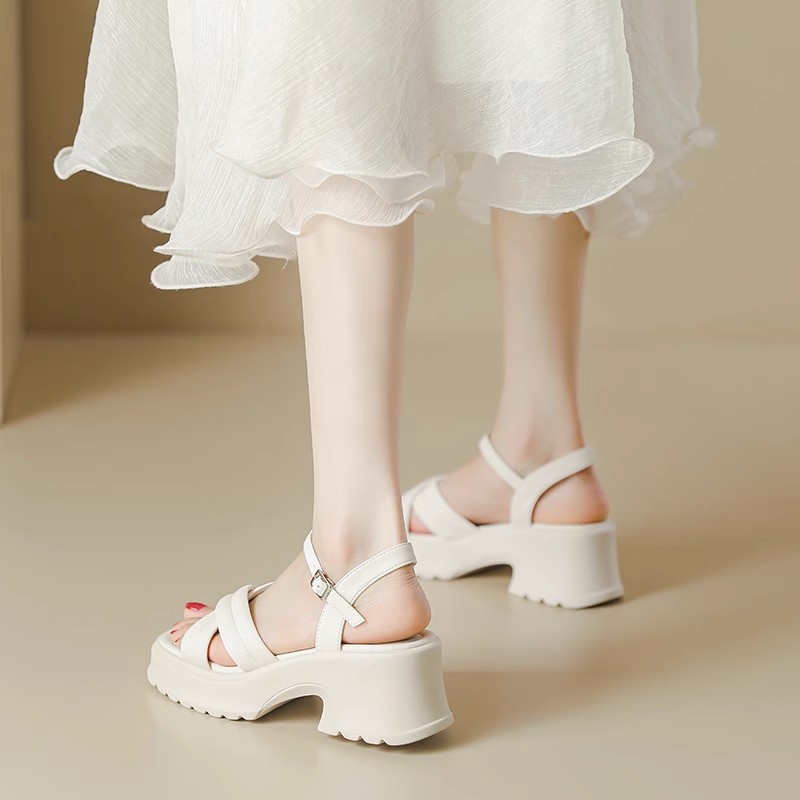 女性用厚底サンダル 2025 夏の新しいフェアリースタイルスカート付き小さなハイヒール白プラットフォームローマンシューズ